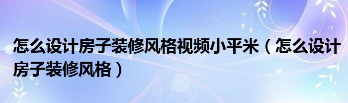 怎么设计房子装修风格视频小平米(怎么设计房子装修风格)