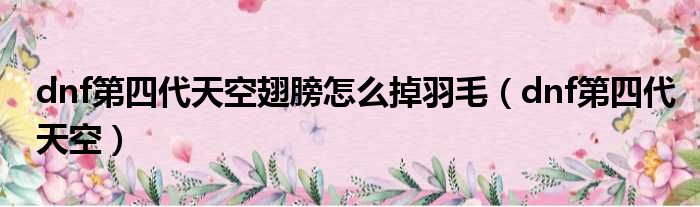 dnf第四代天空翅膀怎么掉羽毛(dnf第四代天空)