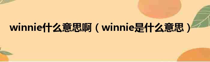 导读 大家好,今天小六子来为大家解答以下的问题,关于winnie什么意思啊,winnie是什么意思这个很多人还不知道,现在让我们一起来看看吧!1、温妮