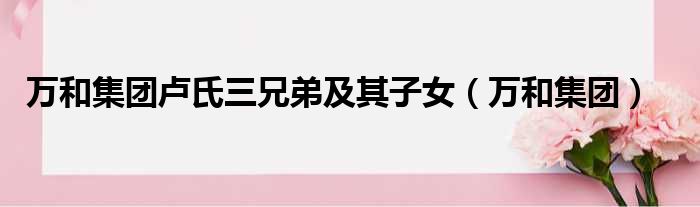 导读 大家好,今天小六子来为大家解答以下的问题,关于万和集团卢氏三兄弟及其子女,万和集团这个很多人还不知道,现在让我们一起来看看吧!1、万