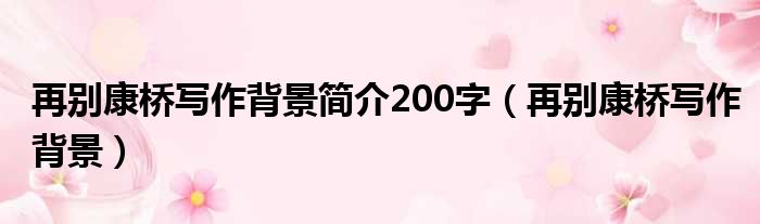 再别康桥写作背景简介200字(再别康桥写作背景)