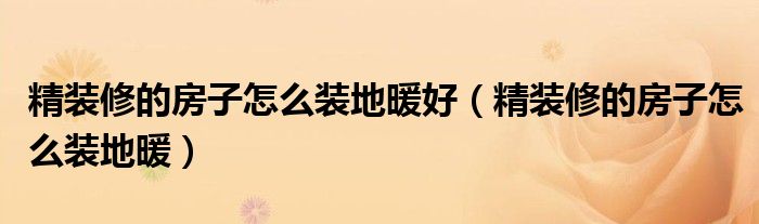 精装修的房子怎么装地暖好(精装修的房子怎么装地暖)