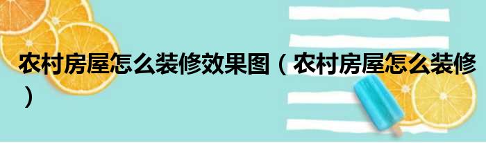 农村房屋怎么装修效果图(农村房屋怎么装修)