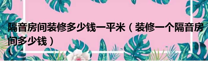 隔音房间装修多少钱一平米(装修一个隔音房间多少钱)