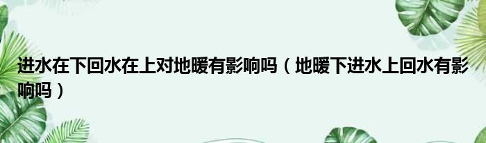 进水在下回水在上对地暖有影响吗(地暖下进水上回水有影响吗)
