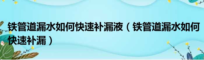 铁管道漏水如何快速补漏液(铁管道漏水如何快速补漏)
