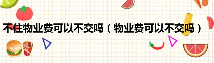 大家好,啊来为大家解答以上的问题。不住物业费可以不交吗,物业费可以不交吗这个很多人还不知道,现在让我们一起来看看吧!