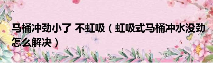 导读 大家好,啊来为大家解答以上的问题。马桶冲劲小了 不虹吸,虹吸式马桶冲水没劲怎么解决这个很多人还不知道,现在让我们一起来看看吧!虹吸