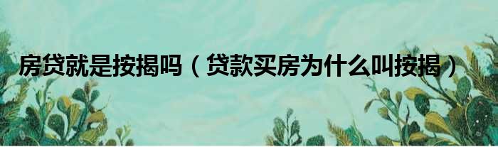 房贷就是按揭吗(贷款买房为什么叫按揭)