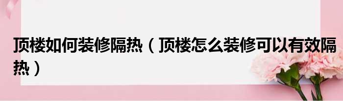 顶楼如何装修隔热(顶楼怎么装修可以有效隔热)