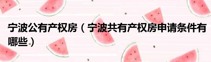 大家好,啊来为大家解答以上的问题。宁波公有产权房,宁波共有产权房申请条件有哪些这个很多人还不知道,现在让我们一起来看看吧!
