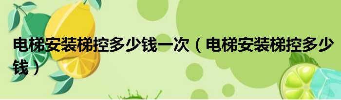 电梯安装梯控多少钱一次(电梯安装梯控多少钱)