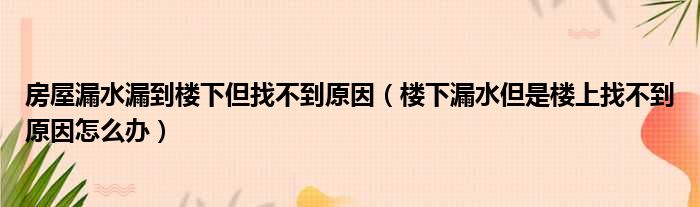 房屋漏水漏到楼下但找不到原因(楼下漏水但是楼上找不到原因怎么办)