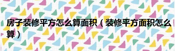 房子装修平方怎么算面积(装修平方面积怎么算)