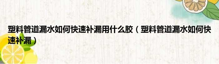 塑料管道漏水如何快速补漏用什么胶(塑料管道漏水如何快速补漏)