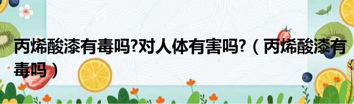 丙烯酸漆有毒吗?对人体有害吗?(丙烯酸漆有毒吗)
