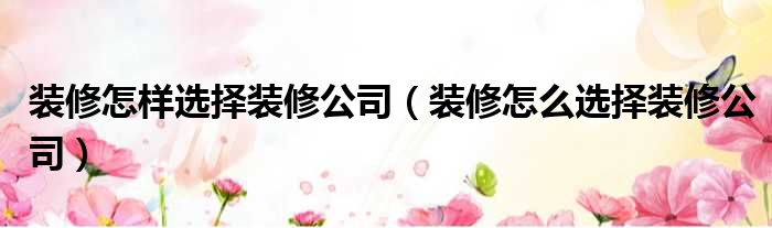 装修怎样选择装修公司(装修怎么选择装修公司)