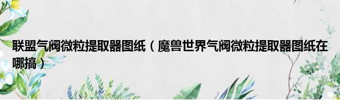 联盟气阀微粒提取器图纸(魔兽世界气阀微粒提取器图纸在哪搞)