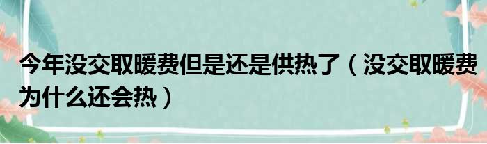 今年没交取暖费但是还是供热了(没交取暖费为什么还会热)