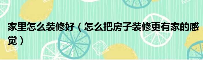 家里怎么装修好(怎么把房子装修更有家的感觉)