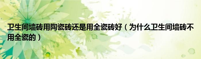 卫生间墙砖用陶瓷砖还是用全瓷砖好(为什么卫生间墙砖不用全瓷的)