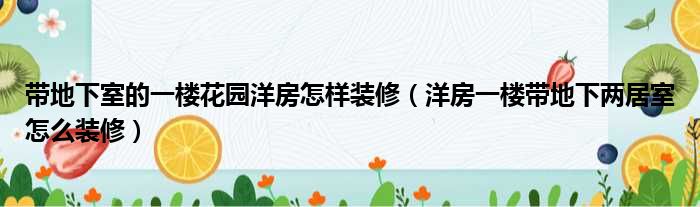 带地下室的一楼花园洋房怎样装修(洋房一楼带地下两居室怎么装修)