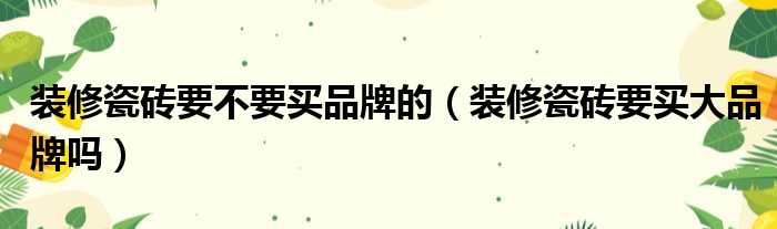 装修瓷砖要不要买品牌的(装修瓷砖要买大品牌吗)