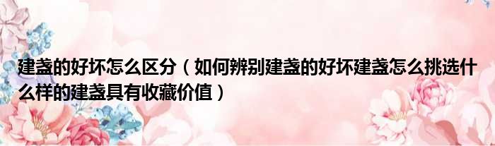 辨别建盏的好坏可以从产地,烧制工艺、器型,瑕疵釉面,釉料来判定,例如建盏的主要烧制方法,有柴烧、电烧、气烧,不同烧制方法特点是不一样的,电烧使用较广泛。选择建盏时可以通过器型、斑纹、胎土、幻彩效果等来选择。具有收藏价值主要通过三点来看,分别为釉色、器型和人,人指的是技艺高超的工艺师。