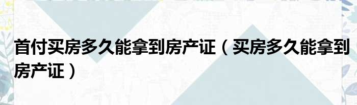 首付买房多久能拿到房产证(买房多久能拿到房产证)