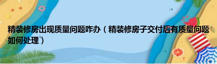 精装修房出现质量问题咋办(精装修房子交付后有质量问题如何处理)