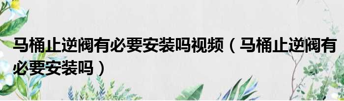 马桶止逆阀有必要安装吗视频(马桶止逆阀有必要安装吗)