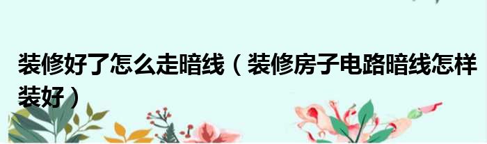 装修好了怎么走暗线(装修房子电路暗线怎样装好)