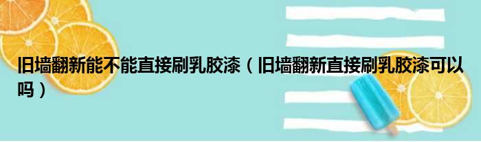 旧墙翻新能不能直接刷乳胶漆(旧墙翻新直接刷乳胶漆可以吗)