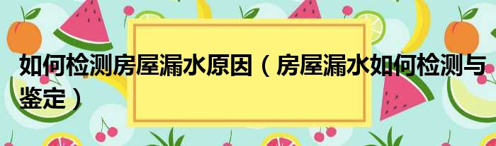 如何检测房屋漏水原因(房屋漏水如何检测与鉴定)