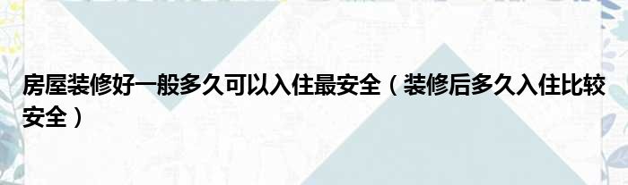 房屋装修好一般多久可以入住最安全(装修后多久入住比较安全)