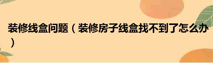 装修线盒问题(装修房子线盒找不到了怎么办)