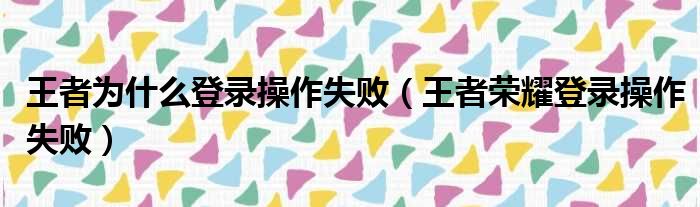 王者为什么登录操作失败(王者荣耀登录操作失败)