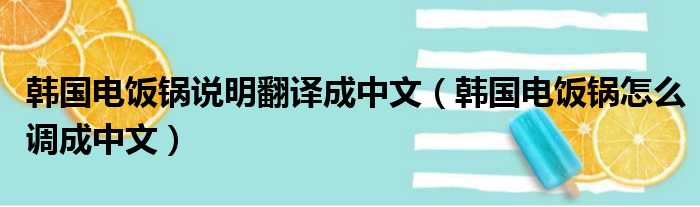 韩国电饭锅说明翻译成中文(韩国电饭锅怎么调成中文)