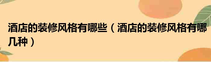 酒店的装修风格有哪些(酒店的装修风格有哪几种)