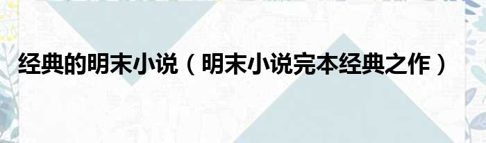 大家好,今天小六子来为大家解答以下的问题,关于经典的明末小说,明末小说完本经典之作这个很多人还不知道,现在让我们一起来看看吧!