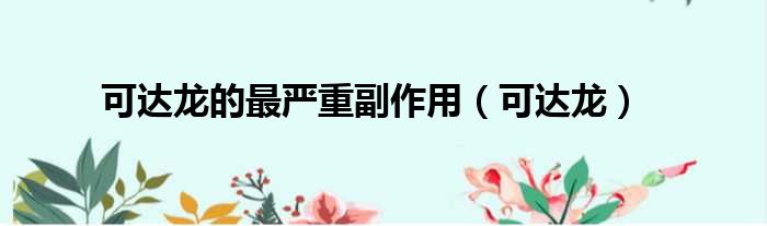 导读 大家好,今天小六子来为大家解答以下的问题,关于可达龙的最严重副作用,可达龙这个很多人还不知道,现在让我们一起来看看吧!1、不良反应: