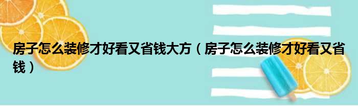 房子怎么装修才好看又省钱大方(房子怎么装修才好看又省钱)