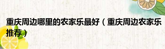 重庆周边哪里的农家乐最好(重庆周边农家乐推荐)