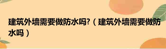 建筑外墙需要做防水吗?(建筑外墙需要做防水吗)