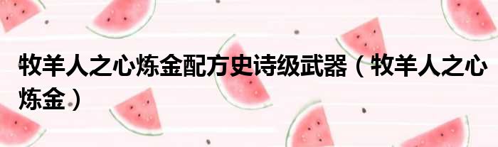 牧羊人之心炼金配方史诗级武器(牧羊人之心炼金)