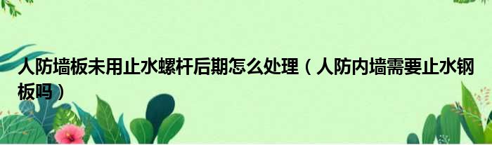 导读 大家好,啊来为大家解答以上的问题。人防墙板未用止水螺杆后期怎么处理,人防内墙需要止水钢板吗这个很多人还不知道,现在让我们一起来看看