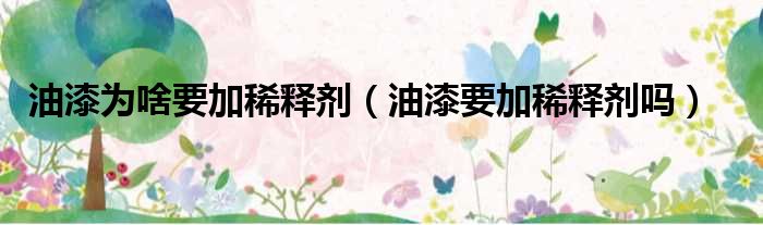 油漆为啥要加稀释剂(油漆要加稀释剂吗)