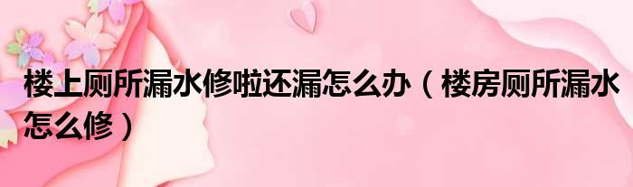 楼上厕所漏水修啦还漏怎么办(楼房厕所漏水怎么修)