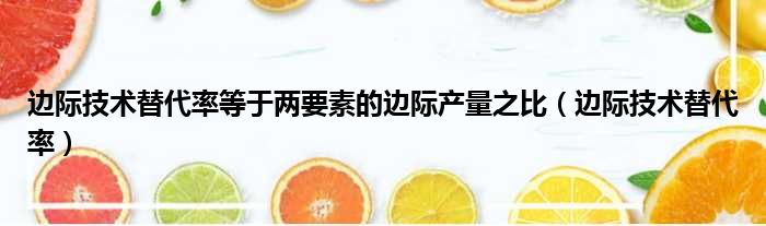 导读 大家好,今天小六子来为大家解答以下的问题,关于边际技术替代率等于两要素的边际产量之比,边际技术替代率这个很多人还不知道,现在让我们