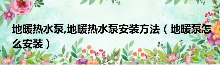 地暖热水泵,地暖热水泵安装方法(地暖泵怎么安装)